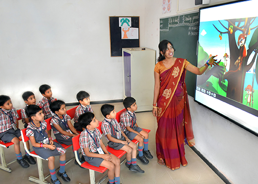 Our smart class room is a vast repository of digital instructions that are mapped to our syllabus. It enables interactive sessions and
